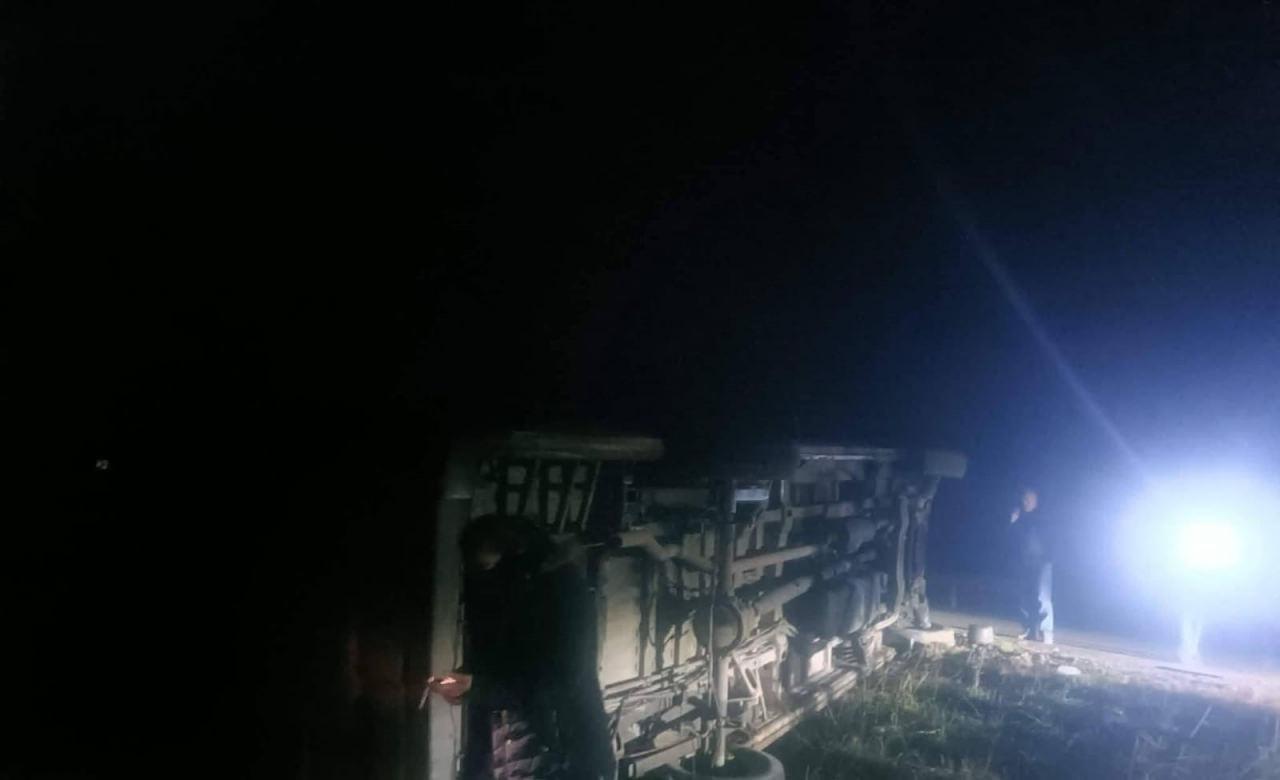 Ankara'nın Çayırhan ve Nallıhan'dan işçileri taşıyan servis aracı, sabah saatlerinde yağmurdan ötürü kayganlaşan Nallıhan-Göynük yolunda kontrolden çıkarak devrildi.