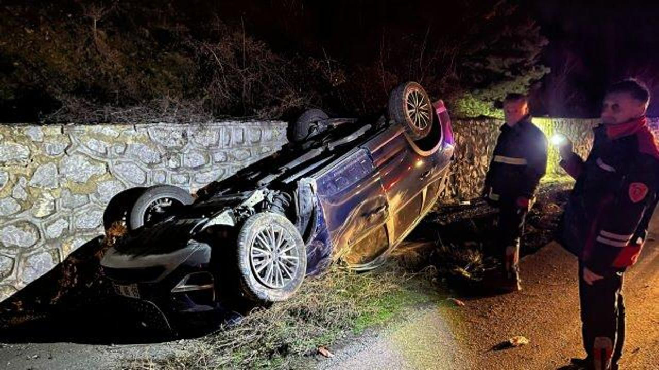 Amasya'da otomobil refüje çarparak devrildi! Yaralılar var