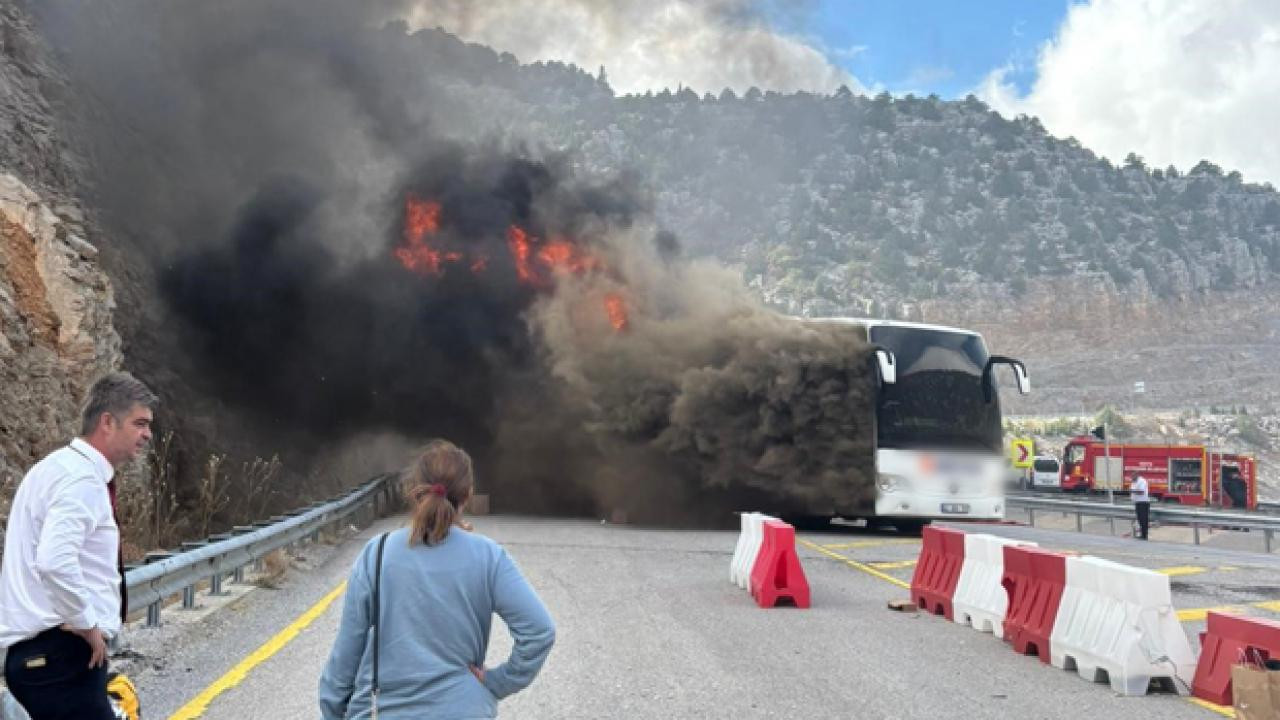 Konya'da facia: Yolcu otobüsü alev aldı